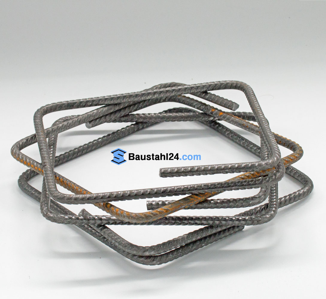 Am häufigsten sind rechteckige oder quadratische Bügel, je nach Querschnitt des Bauteils. In Sonderfällen werden auch runde, L-förmige oder gebogene Varianten eingesetzt, angepasst an statische und geometrische Vorgaben.